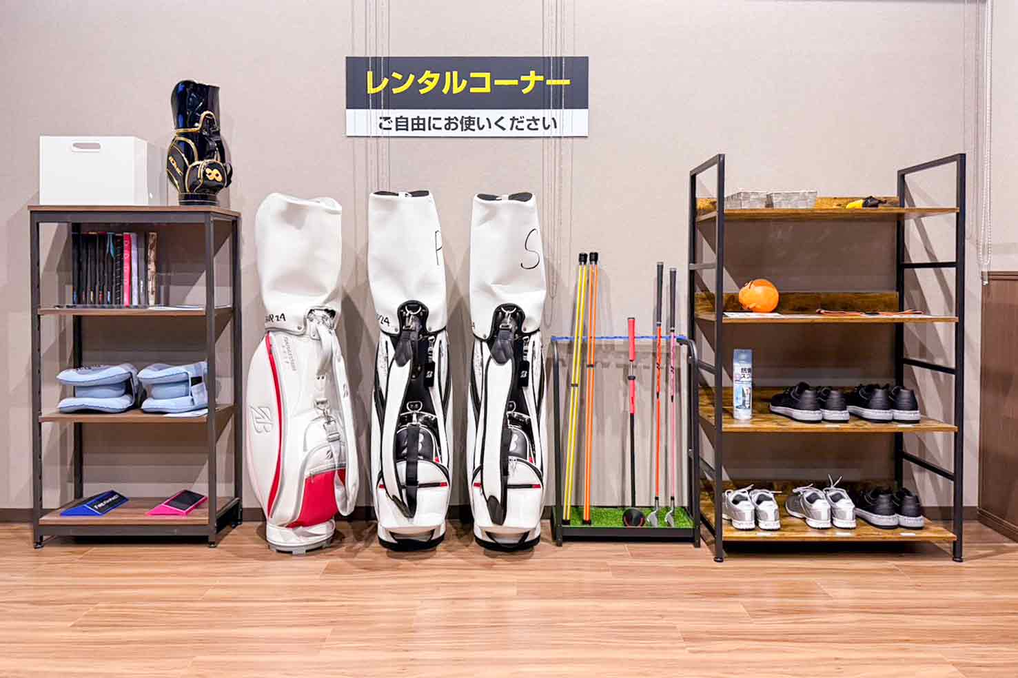 クラブはもちろん、シューズやグローブまで練習に必要な一式を全て無料レンタルできます。クラブを持っていない方や急に練習したくなった方でもご利用できます。