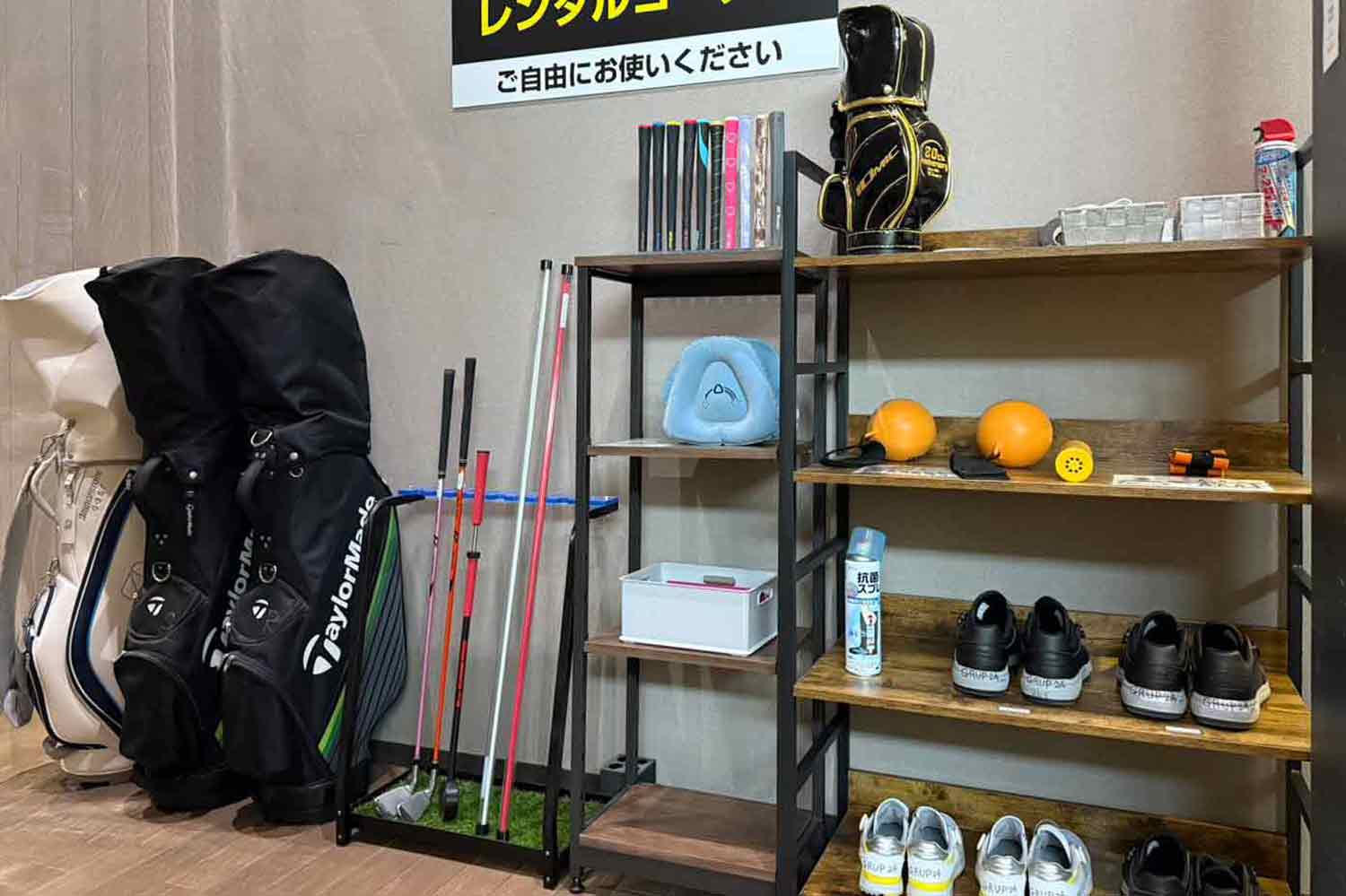 クラブはもちろん、シューズやグローブまで練習に必要な一式を全て無料レンタルできます。クラブを持っていない方や急に練習したくなった方でもご利用できます。